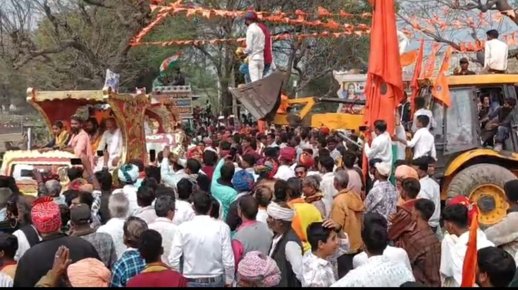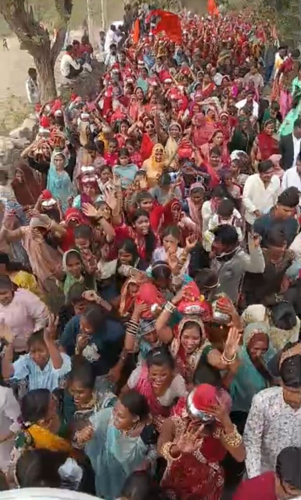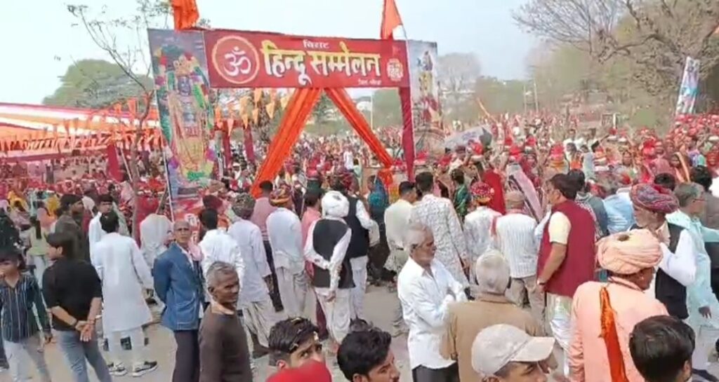 मावली,(नरेन्द्र त्रिपाठी)! फलीचडा में भव्य हिन्दू सम्मेलन मनाया गया , सम्मेलन की कलश यात्रा भी भव्य रुप में थी 2100 महिलाए, मातृशक्ति कलस लेकर चल रहीं थीं। वहीं कहीं प्रकार की झांकीया भी रथों में सवार थे कहीं करतब भी किये गये तलवार चलाना भाला लेकर नृत्य करना आदि थे वहीं नारों की गुंज से पुरा फलीचडा भगवा रंग में रंग गया था। पुष्प वर्षा भी की गई थी।सभा मंडप में मंच संचालक भाई श्री ओम जी समदर्शी जी द्वारा किया गया।अभी संत महात्माओ ने भी हिन्दुस्तान के लिए अच्छे से समझाया। गोमाता को राष्ट्र माता का दर्जा दिलाने को कहां और गौ माता के सेवा करने को कहा,गौ माता को आवारा नहीं छोड़े और अतः में फलीचडा मंडल की तरफ से आभार भाई श्री नेमीचंद धाकड़ द्वारा किया गया। इसके बाद सभी धर्मावलंबियों को भोजन प्रसाद ग्रहण किया गया।सभी दानदाताओं,तन,मन,धन से सेवा देने वाले एवं मंडल के सभी सदस्यों का मनपूर्वक आभार एवं धन्यवाद आप सभी के मेहनत आज फलीचडा के इतिहास में स्वर्ण अक्षरों में लिखा जाएगा।जय राणा प्रताप की,जय शिवाजी,जय भारत माता की,जय श्रीराम, सांवरिया सेठ की जय !