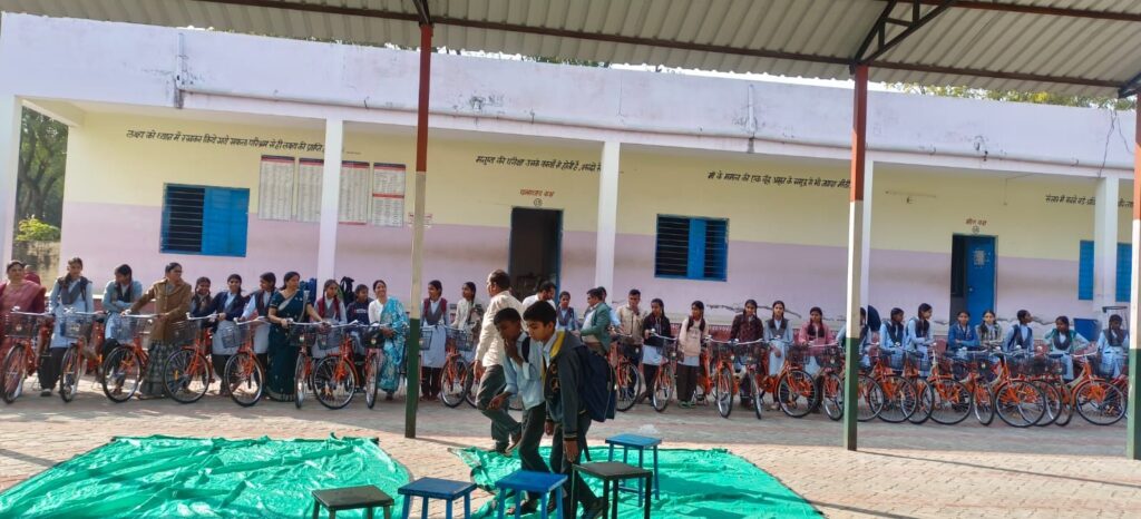 आसना विद्यालय में 34 बालिकाओं को साईकिल वितरण की गई ।