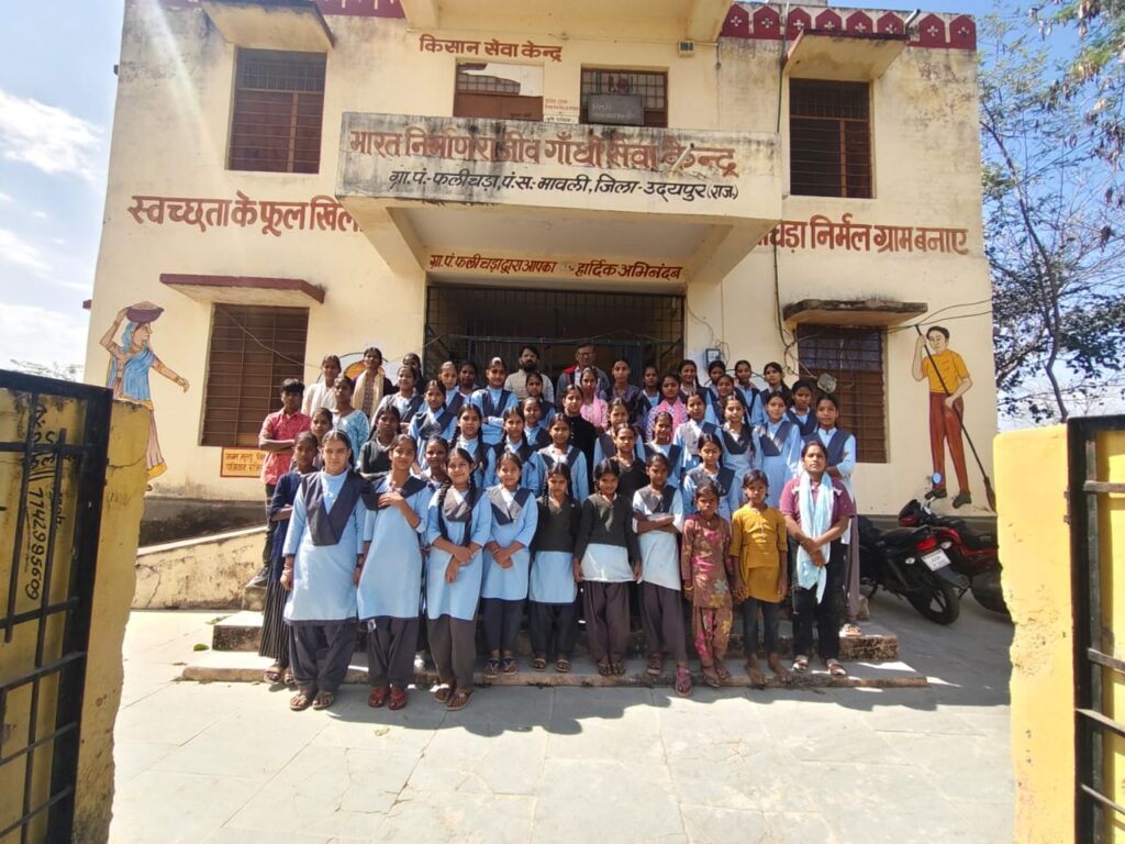 मावली, (नरेन्द्र त्रिपाठी)!विकल्प संस्थान मावली ब्लॉक की ओर से कुचौंली , राजकीय बालिका उच्च प्राथमिक विद्यालय फलीचडा़ व भील बस्ती 50 बालिकाओं को फलीचडा़ पंचायत की एक्स्पोज़र विजिट करवाई इस दौरान विकल्प संस्थान से रीना बंजारा द्वारा संस्था का परिचय – शिक्षा, बाल विवाह, हिंसा, खेल , जेंडर समानता इन मुद्दों पर समुदाय और विद्यालय में लड़के – लड़कियों , हितधारकों के साथ जागरूकता के लिए कार्यरत है, पंचायत सचिव नितिन अग्रवाल द्वारा अपना परिचय देते हुए बालिकाओं ने सर से जाना कि सचिव कैसे बने? जिसमें सर ने अपनी शिक्षा से लेकर सरकारी नौकरी तक के सफर को साझा किया गया इसी में बालिकाओं को पंचायत स्तरीय चल रही योजनाओं के बारे में जानकारी दी – जन्म प्रमाण पत्र, मृत्यु प्रमाण पत्र, पालनहार योजना में कक्षा अनुसार बालक बालिकाओं को छात्रवृत्ति मिल रही है , आवास योजना, खाद्य सुरक्षा योजना , पेंशन योजना सभी योजनाओं को बालिकाओं द्वारा समझते हुए अपनी समस्याओं को रखा गया जिसमें स्कूल शौचालय में पानी की कमी व सेनेटरी नैपकिन निस्तारण मशीन, सड़क टूटी हुई , नालियां टूटी हुई, रोड़ लाइट नहीं इसी के साथ रोजगार सहायक वर्दी चंद जाट द्वारा समस्याओं के समाधान की प्रक्रियाओं के बारे में बताया गया हर घर में शौचालय बनाने को लेकर बालिकाओं को जागरूक किया गया, उसके लिए सरकार द्वारा मिल रही 12000 राशि के बारे में जानकारी दी गई विद्यालय से प्रधानाध्यापक योगेश जैन व अध्यापिका बसंत मेघवाल का सहयोग रहा विकल्प संस्थान से – योगेश्वरी सुथार, सुगना भील उपस्थित रहे!