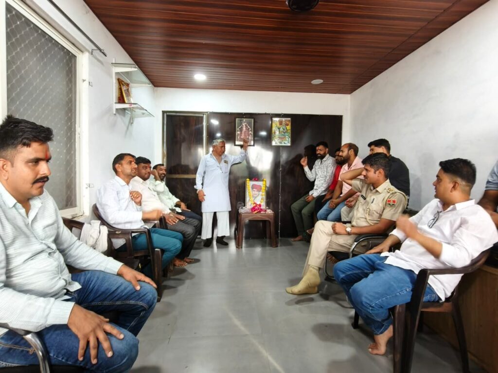 मावली ! मावली के जवाहर नवोदय विद्यालय के निकट बलवीर ठेकेदार के कार्यालय पर गुर्जर समाज के कर्मचारी ,अधिकारी व समाज बंधुओ ने एकत्रित होकर समाज के प्रेरणा पुंज व समाज हितार्थ कार्य करने वाले युगपुरुष स्वर्गीय श्री कर्नल किरोड़ी सिंह बैसला जी की चतुर्थ पुण्यतिथि पर एकत्रित होकर पुष्पांजलि सहित श्रद्धांजलि अर्पित की गई !इस दौरान क्षेत्र के विभिन्न गणमान्य नागरिक व कर्मचारी गण मौजूद रहे !जिसमें वक्ताओं ने स्वर्गीय बैंसला जी के विभिन्न सेवा कार्यों सहित समाज हित में किए गए जागरूकता आंदोलनों को याद करते हुए समाज को उनके पद चिन्हों पर चलने पर बल दिया गया ! इस दौरान मांगीलाल गुर्जर ,आबकारी थाना अधिकारी तेज सिंह गुर्जर ,असिस्टेंट प्रोफेसर विक्रम गुर्जर ,व्याख्याता कमलेश गुर्जर व सक्रिय समाज कार्यकर्ता के रूप में बुधराम गुर्जर खेतड़ी वाले, कैलाश गुर्जर, पप्पू जी वाजमिया ,अशोक जी सालोर,महावीर जी टोंक सहित बड़ी संख्या में समाज बंधु उपस्थित रहे!