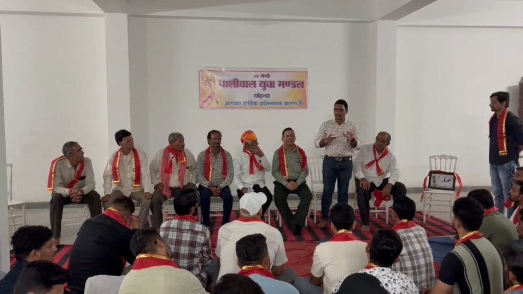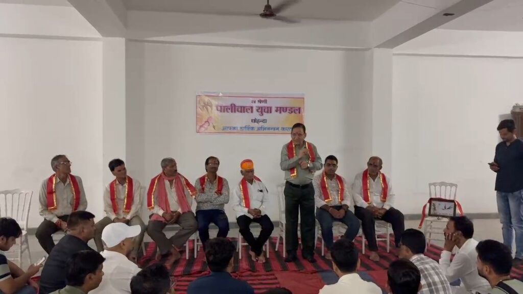 कार्यक्रम की अध्यक्षता कर रहे , 24 श्रेणी पालीवाल समाज धोइंदा के अध्यक्ष हरिवल्लभ पालीवाल ने युवाओं को संबोधित करते हुए कहा कि आज के समय में युवा शक्ति की इस राष्ट्र को जरूरत है युवाओं के कंधों पर सनातन धर्म एवं संस्कृति व संस्कारों को आगे बढ़ने का दायित्व है युवा अपनी ऊर्जा के साथ समाज उत्थान व समाज उत्थान से राष्ट्र उत्थान व विकास में अपना योगदान देवे ।जब युवा अपने दायित्व एवं कर्तव्यों को लेकर समाज में काम करेगा तो निश्चित ही इस समाज एवं राष्ट्र को एक नई दिशा मिलेगी।