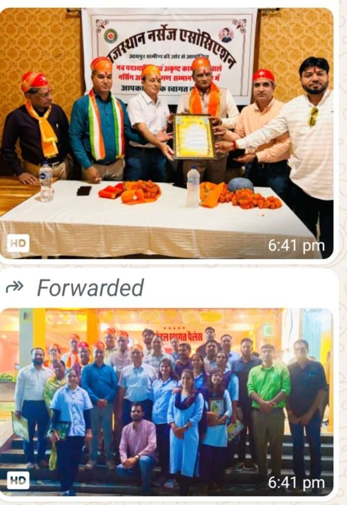 राजस्थान नर्सेज एसोसिएशन ने किया उत्कृष्ट कार्य हेतु  अधिकारियों का अभिनन्दन