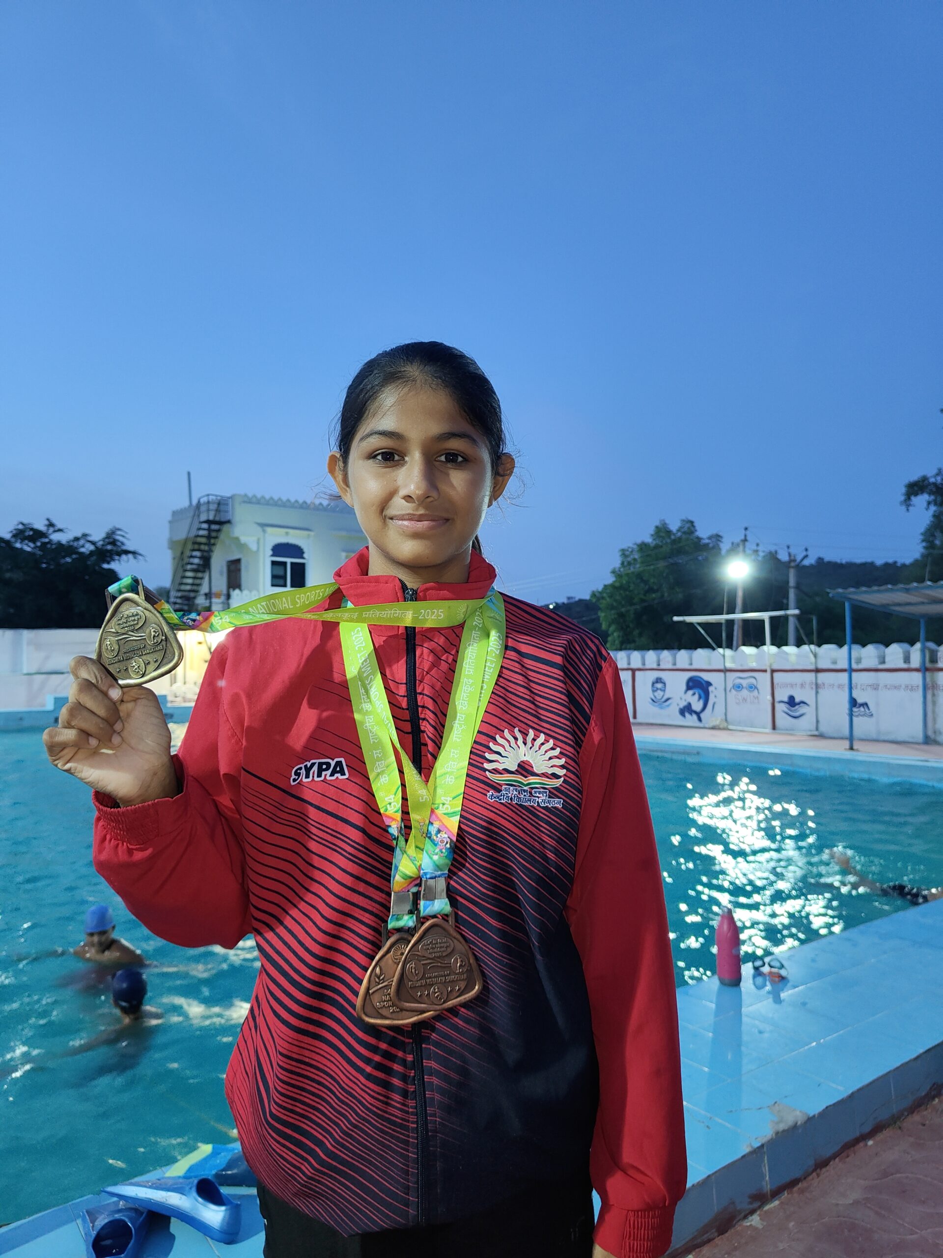 राष्ट्रीय तैराकी प्रतियोगिता 2025 में यशवी ने राष्ट्रीय तैराकी में जीते स्वर्ण एवं कांस्य पदक mv24media
