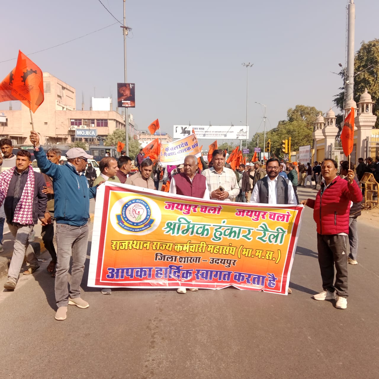 भारतीय मजदूर संघ राजस्थान द्वारा जयपुर में आयोजित हुंकार रैली में भाग लेने हेतु उदयपुर से 3 बस रवाना mv24media
