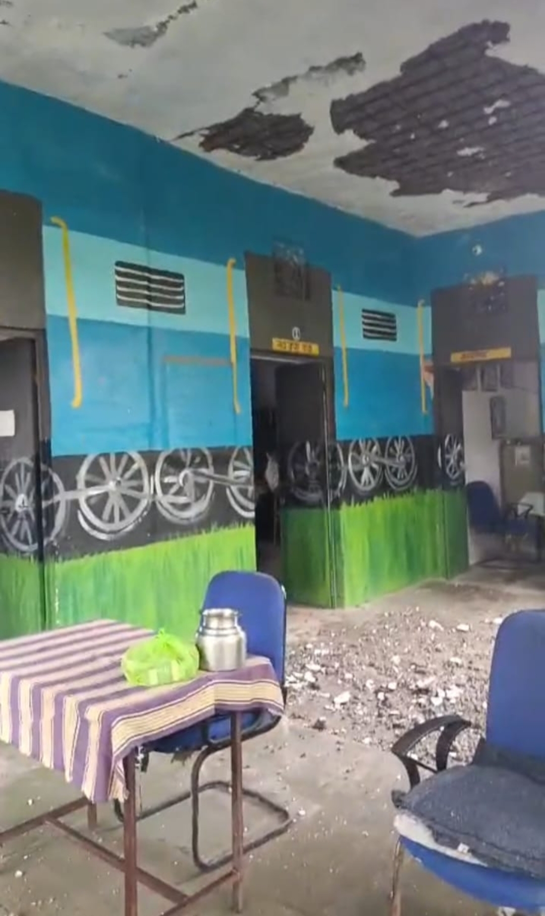 ट्रेन वाले बंजारा बस्ती सरकारी विद्यालय का पलस्तर गिरा