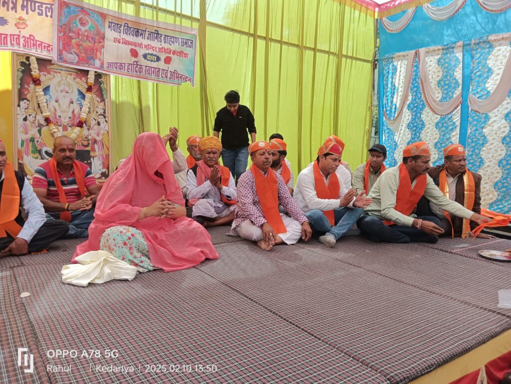 भींडर (कन्हैयालाल मेनारिया बासड़ा)! विश्वकर्मा जांगिड़ ब्राह्मण समाज एवं मंदिर समिति केदारिया के तत्वाधान में श्री विश्वकर्मा जन्मोत्सव समारोह श्री विश्वकर्मा मंदिर केदारिया में आयोजित हुआ कार्यक्रम का आयोजन पूर्व विधायक प्रीति गजेंद्र सिंह शक्तावत के मुख्य आथित्यमें हुआ