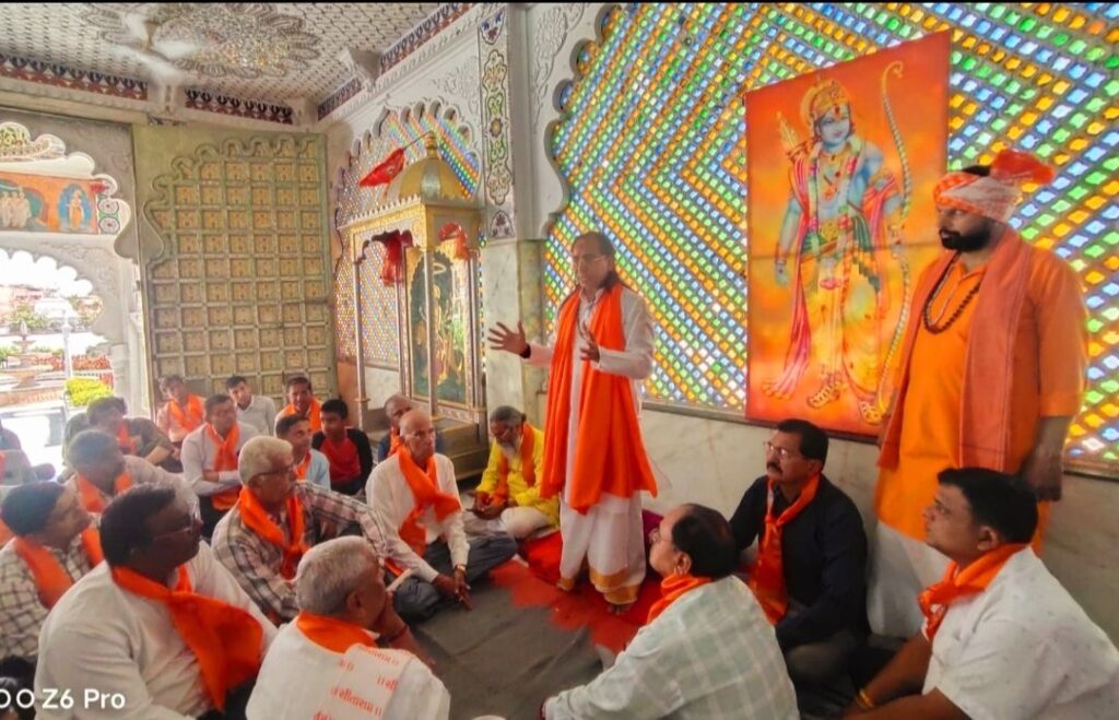 खैरवाड़ा। धरणेन्द्र जैन। श्रीकृष्ण जन्म भूमी मुक्ति आंदोलन जनजाग्रति अभियान के तहत श्री कृष्ण भव्य रथ यात्रा जो 4 मार्च से द्वारिका गुजरात से प्रारम्भ हुई है एवं मथुरा तक 23 मार्च पहुंचेगी का ऋषभदेव व खैरवाड़ा में मंगल प्रवेश करने पर भव्य स्वागत अभिंनन्दन किया गया । रथयात्रा के महंत डॉ नरेशपुरी के पावन सानिध्य एवं नेतृत्वकर्तां आचार्य राजेष्वर राष्ट्रीय अध्यक्ष संयुक्त भारतीय धर्म संसद एवं साथी रथ यात्रियो का फुलमालाओं उपरणा से श्रीराममन्दिर नाहरगढ एवं डॉकबंगला खैरवाड़ा पर भव्य स्वागत किया गया । श्रीराम मन्दिर में धर्मसभा की गई। इस अवसर पर विश्व की सबसे छोटी गीता रामसिंह राजोरिया द्वारा लिखित भागवत गीता का दर्शन कराया। सभी भक्तो को भक्त कवि डॉ कैलाश परवाल रचित श्री कृष्णम महाकाव्य ग्रन्थ की पुस्तक वितरित कि गई जिसमें 5000 से अधिक दोहें एवं चौपाईयां तथा गीत है। सभी भक्तो का राजेश्वरजी ने श्री कृष्णम् जन्म भूमी मुक्ति आन्दोलन का उपरणा से अभिनन्दन किया। सभी रथ यात्रियों को नगर भ्रमण कराते हुएं जयकार करते, भक्ति गीत की सुमधुर लहरियो के साथ श्रीकेशरियाजी मन्दिर तक ले गये जहां ऋषभदेवजी भगवान का दर्शन कराया । इस अवसर पर नगर भण्डारी नरेन्द्र कुमार विप्र फाउण्डेशन जिला मन्त्री हनुमन्त रावल नगर अध्यक्ष सुरेश त्रिवेदी गिरीष भण्डारी राजेन्द्र अर्दवी उपाध्यक्ष गोपाललाल शर्मा देवीलाल भोई रमेश सेवक नवीन रावल नगरपालिका पार्षद प्रवीण भोई डॉ करूण सोमपुरा गजेन्द्र लौहार भीमराज मीणा मुकेश व्यास नारयण व्यास बद्रीप्रसाद रावल राजेन्द्र त्रिवेदी ब्लॉक अध्यक्ष शिवनारयण त्रिवेदी मन्त्री प्रियाषुं पहाड तरूण सोमपुरा महेन्द्र पहाड घनश्याम रावल भावेश शर्मा कुन्जबिहारी रोशन मेनारिया चन्द्रनारायण त्रिवेदी विप्र फाउण्डेषन जिला महिला मंत्री रेखा रावल वन्दनारावल सविता सोमपुरा हेमा ईन्दरा रावल गायत्री पिन्की रावल शकुन्तला सुथार उपस्थित थे।