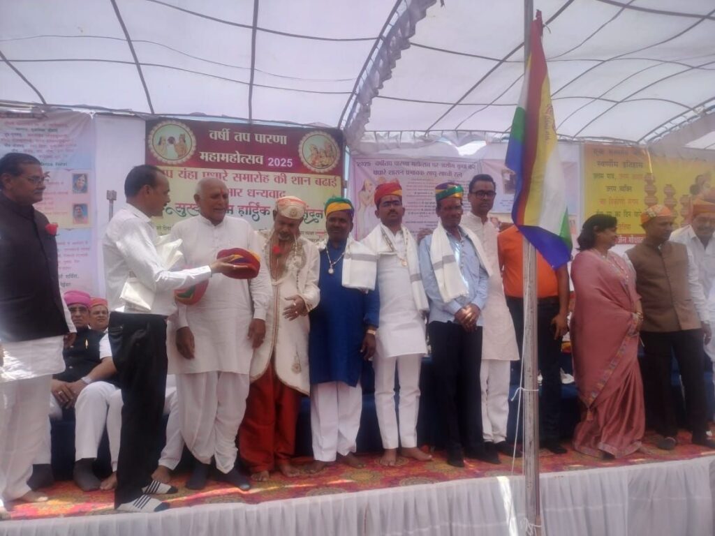 गोगुन्दा 30 अप्रैल(कांतिलाल मांडोत)! श्री वर्धमान स्थानकवादी जैन श्रावक संघ के तत्वाधान में उमरणा स्थित महावीर जैन गोशाला में अक्षय तृतीया के पावन दिवस पर वर्षीतप पारणा महोत्सव का आयोजन जिनेन्द्रमुनि मसा एवं सुकनमुनि मसा के पावन सानिध्य में भक्तिभाव से मनाया गया।इसमे 195 तपस्वीयों का पारणा किया गया ,जिसमे उन्होंने एकान्तर तप की कठिन साधना की गई।जिनमे एक दिन खाना और एक दिन उपवास जैसा क्रम पूरे 12 महीने तक चलता रहता है।उमरणा के प्रांगण में महाश्रमण जिनेन्द्रमुनि म सा एवं सुकुनमुनि मसा के पावन सानिध्य मेंमंगल प्रवचनों का श्रवण करने के पश्चात सभी तपस्वी उपस्थित हुए,विधि विधान द्वारा इक्षु रस से सामूहिक पारणा करवाया गया।