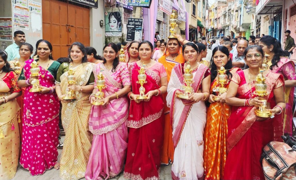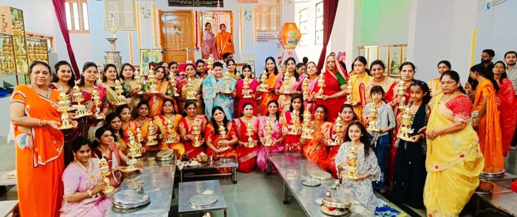 खैरवाड़ा (धरणेन्द्र जैन)। भक्तामर महामंडल विधान अर्चना के चौथे दिन आर्यिका संघ के चातुर्मास निमित्त 36 मूलगुण के 36 कलशों की आज नेमीनाथ जिनालय में मंत्रोच्चार के साथ विधिवत स्थापना की गई। समाज के उपाध्यक्ष विपिन बखरिया ने बताया कि चातुर्मास कमेटी के अध्यक्ष नरेन्द्र पंचोली के नेतृत्व में प्रातः नेमीनाथ जिनालय से बैंड बाजे एवं कलशों के साथ शोभायात्रा प्रारंभ हुई जिसमें पुरुष,महिलाएं नाचते गाते बैंड की मधुर धुन पर थिरकते नजर आए। जुलूस आजाद चौक,शांतिनाथ मंदिर,पुराना बस स्टैंड, शास्त्री बाजार,सदर बाजार होते हुए नेमीनाथ जिनालय पहुंचा जहां सुप्रग्य मति माताजी के सानिध्य में विधि विधान एवं मंत्रोच्चार के साथ 36 मूलगुण के 36 कलशों को से चातुर्मास निमित स्थापित किया गया। इससे पूर्व भक्तामर महामंडल विधान अर्चना के चौथे दिन आज रूपल कपिल जैन परिवार द्वारा 48 अर्घ्य का समर्पण किया गया। पूर्व आचार्यों आदि सागर,महावीर कीर्ति,विमलसागर,तथा सन्मतिसागर की भव्य अर्चना के साथ चतुर्थ पट्टाधीश आचार्य सुनीलसागर जी को अर्घ्य भेट किए गए। आर्यिका सुप्रज्ञ मति माताजी के मंगल प्रवचन के बाद आहार क्रिया सम्पन्न हुई। समारोह में संरक्षक बाबूलाल सराफ,अध्यक्ष वीरेन्द्र बखारिया, महामंत्री पंकज,मंत्री कुलदीप जैन,कोषाध्यक्ष हेवन जैन, बाबूभाई पारस,विवेक ,बसंत गांधी, कन्हैयालाल जैन सहित भारी संख्या में समाजजन उपस्थित थे।