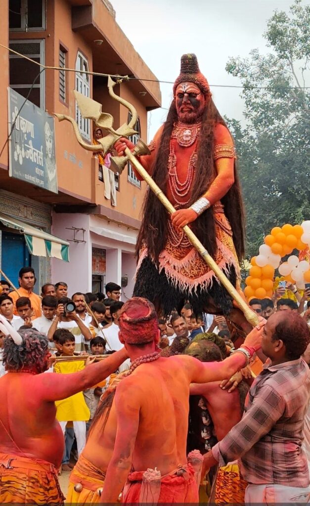 भटेवर, (कन्हैयालाल मेनारिया बासड़ा)3 जुलाई । वल्लभनगर उपखंड क्षेत्र के गांव बाठेड़ा खुर्द,खरसान मोडी, रोही खेड़ा व भटेवर कुल पांच गांवों की आस्था व श्रद्धा का केंद्र नीलकंठ महादेव जो सभी गांवों से समान दूरी पर स्थित है तक सावन मास में रविवार को दो गांव बाठेड़ा खुर्द व मोड़ी से विशाल कावड़ यात्रा निकाली गयी। बाठेड़ा खुर्द से यात्रा प्रातः 9 बजे ओरा कांकर से डीजे की धून पर भजनों से शुरू हुई जो हनुमान चौक,पंचायत तिराहे, वासुदेव चौक , होली चौक, पतवारी चौक , मेहता चौक , खेडा मोहल्ला होती हुए हुई कालिका माता मंदिर पहुंची। पूरे गांव के पुरूष ,महिला और बच्चे महादेव के भजनो पर नाचते, गाते, झूमते हुए चल रहे थे। महादेव के जयकारो ,भव्य झांकी और बाहर से आए विशेष कलाकारो ने शिव और शिव परिवार के सदस्यों का स्वरूप बन कर शिव भजनो पर शानदार प्रस्तुति दी जिससे पूरे गांव का माहौल भक्तिमय हो गया। कावड़ यात्रा में ऊंट गाड़ी में शिवलिंग को स्थापित कर उसकी पूरी रास्ते पूजा अर्चना की गई। जगह-जगह पर ग्रामवासीयो ने कावड़ियों पर पुष्प वर्षा कर स्वागत अभिनंदन किया।कालिका माता मंदिर से यात्रा पुनः रवाना हुई जो नीलकंठ महादेव मंदिर पहुंच समाप्त हुई। सभी कावड़ियों ने जलाभिषेक करते हुए महादेव की पूजा-अर्चना करी व दर्शन कर प्रसाद ग्रहण किया । फिर महाआरती के लिए बोली लगी एवं आरती की गई । मोङी गाँव मे भी रविवार को ही तारकेश्वर महादेव मंदिर प्रांगण से विधिवत पूजा अर्चना के बाद कावड़ यात्रा शुरू हुई जो नीलकंठ महादेव मंदिर पहुचने पर समाप्त हुई ।सभी श्रद्धालु जुमते-गाते एवं महादेव के जयकारों के साथ नीलकंठ महादेव पहुंचे। कावङ यात्रा के नीलकंठ महादेव पहुचने पर सभी भक्तों ने महादेव का जलाभिषेक करते हुए महादेव की पूजा-अर्चना करी। इस धार्मिक आयोजन में सेंकड़ों की संख्या में महिला-पुरुष श्रद्धालुओ ने भाग लिया अंत मे महादेव की विधि विधान से पूजा-अर्चना कर प्रसाद वितरण किया गया