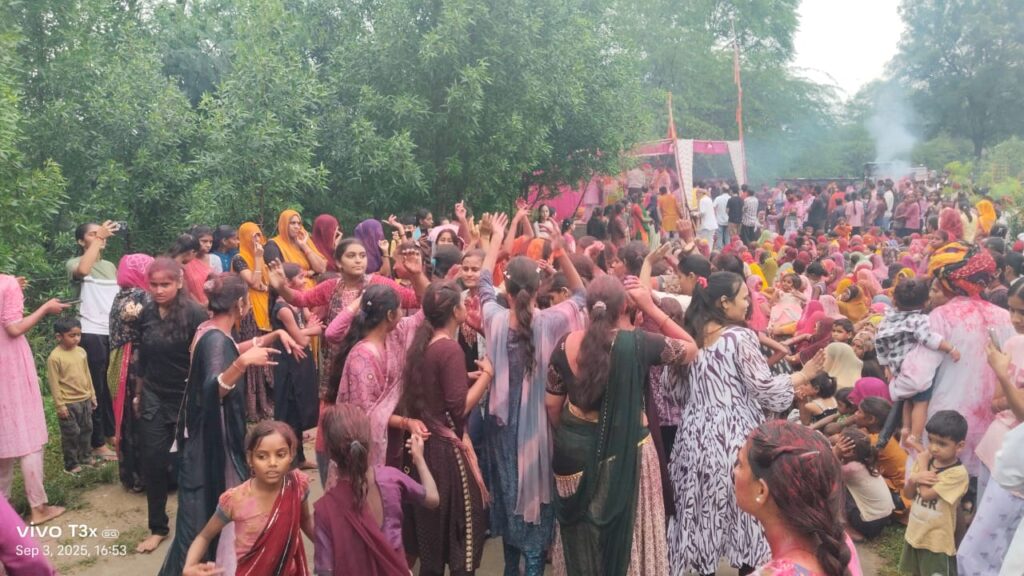 सरवर स्नान के समय तालाब की पाल पर ठाकुर जी को स्नान कराने के बाद सामुहिक