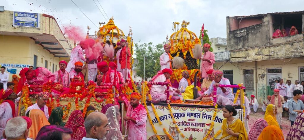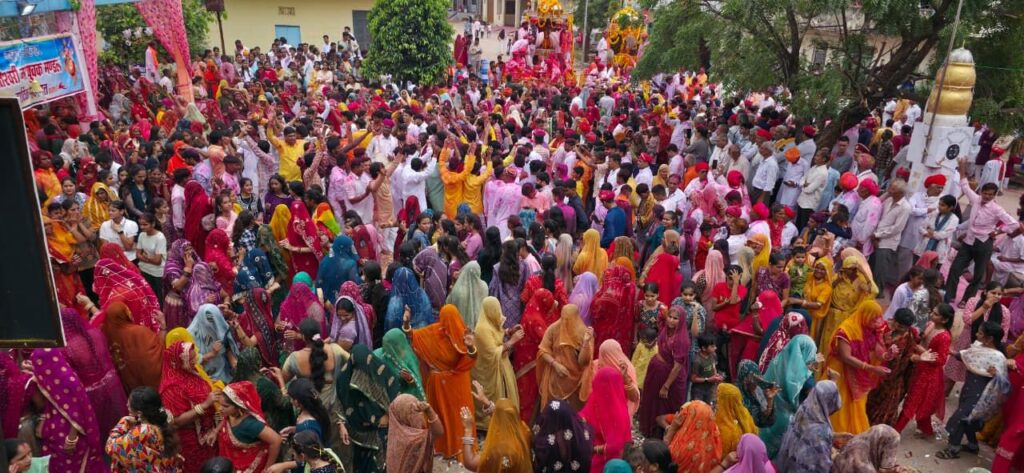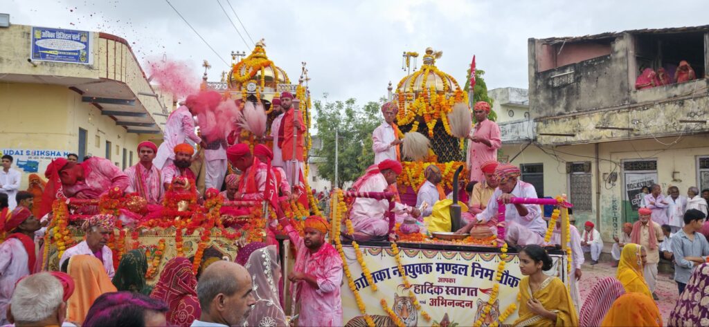 भक्तो ने रथयात्रा का जगह-जगह पुष्प एवं अबीर गुलाल की वर्षा कर किया स्वागत, माता के स्वागत में श्रद्धालुओं ने बिछाए पलक पांवड़े