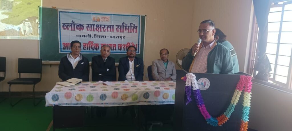मावली (नरेन्द्र त्रिपाठी) ! ब्लॉक साक्षरता एन आई एल पी ब्लॉक साक्षरता कार्यक्रम अंतर्गत सभी पी ई ई ओ का स्वामी विवेकनंद मॉडल स्कूल मावली में एक दिवसीय कार्यशाला का आयोजन किया गया , कार्यक्रम का संचालन ब्लॉक समन्वयक कमलेश कुमार त्रिवेदी ने किया। दक्ष प्रशिक्षक जगदीश चंद्र पालीवाल एवं योगेश जैन ने उल्लास कार्यक्रम से संबंधित संपूर्ण जानकारी दी।उल्लास ऐप पर लर्नर को ऑनलाइन कार्य से लेकर परीक्षा तक की जानकारी जगदीश चंद्र पालीवाल ने बहुत ही सहज तरीके से बताया। योगेश कुमार और ने उल्लास पुस्तक के बारे में स्वयं शिक्षक द्वारा किस तरह से लर्नर को पढ़ाया जावे को बहुत ही अच्छा बताया। अंत में मुख्य ब्लॉक शिक्षा अधिकारी श्री प्रमोद कुमार सुथार ने सभी को धन्यवाद दिया। कार्यक्रम में चुन्नी लाल शांति लाल मीणा ने सहयोग दिया ।