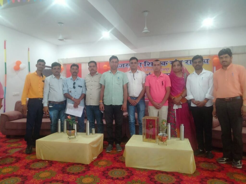 उदयपुर (नरेन्द्र त्रिपाठी)! राजस्थान शिक्षक संघ राष्ट्रीय के नवनिर्मित सरस्वती शिक्षक भवन के लोकार्पण कार्यक्रम में हिरण मंगरी उदयपुर पधारे राजस्थान के पूर्व प्रदेश अध्यक्ष वर्तमान सांसद सीपी जोशी , कैबिनेट मंत्री बाबूलाल खराड़ी ,मनालाल रावत सांसद उदयपुर ,ताराचंद जैन विधायक उदयपुर शहर ,फूल सिंह मीणा विधायक उदयपुर ग्रामीण, रमेश पुष्करणा प्रदेश अध्यक्ष राष्ट्रीय शिक्षक संघ को आज राजस्थान विद्यालय सहायक पंचायत शिक्षक संघ के दिनेश सिंह बुटडेचा जिला अध्यक्ष उदयपुर, ओमप्रकाश मेघवाल पूर्व जिला अध्यक्ष, अर्जुन सिंह राठौड़ ब्लॉक अध्यक्ष गोगुंदा, देवी सिंह जी जिला उपाध्यक्ष , लक्ष्मण लाल गाड़री ब्लॉक अध्यक्ष ख़ेमली, चंदा कुमारी सराडा, मंजू चौहान बड़गांव, महेंद्र सिंह ,पुष्कर पालीवाल, प्रकाश पालीवाल, श्यामलाल ,कल्याण सिंह आदि संघ के सदस्यों ने अपने नियमितीकरण की मांग को लेकर ज्ञापन दिया