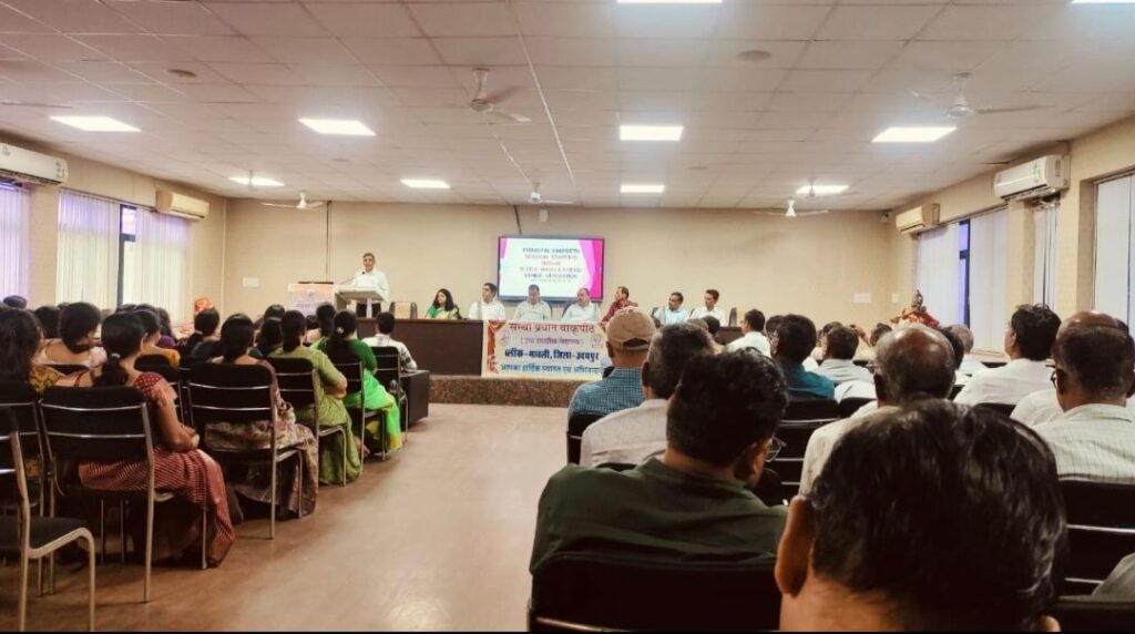 मावली (नरेन्द्र त्रिपाठी)मावली एवं खेमली ब्लॉक क्षेत्र की दो दिवसीय प्राचार्य वाकपीठ गीतांजलि इंस्टीट्यूट ऑफ टेक्निकल स्टडीज डबोक में आयोजित हुई। मुख्य अतिथि भाजपा प्रत्याशी कृष्णगोपाल पालीवाल, अध्यक्ष मुख्य ब्लॉक शिक्षा अधिकारी प्रमोद कुमार सुथार, विशिष्ट अतिथि जीवन सिंह राव थे। वाकपीठ अध्यक्ष उमेश महेश्वरी, राष्ट्रीय शिक्षक संघ के जिला अध्यक्ष पुष्पेंद्र सिंह झाला, उपाध्यक्ष शैलेश कोठारी, ब्लॉक अध्यक्ष चंद्रशेखर जाट, शंकर लाल जाट, राजस्थान शिक्षक (अंबेडकर) के प्रदेश संरक्षक एवं पूर्व प्रदेश महामंत्री सुरेश कुमार देशबंधु, वाकपीठ महासचिव प्रदीप सिंह नेगी, सभाध्यक्ष मोहनलाल स्वर्णकार, मीडिया प्रभारी शंकर लाल चावड़ा आदि उपस्थित रहे। सर्वप्रथम मां सरस्वती का द्वीप प्रज्जलन- पूजा अर्चना करने के बाद सभी अतिथियों का तिलक, उपरणा एवं मेवाड़ी पगड़ी पहना कर स्वागत अभिनंदन किया गया। दोनों ब्लॉक के शत प्रतिशत बोर्ड परीक्षा परिणाम देने वाले विद्यालय प्राचार्य को उपरना ओढ़ा कर प्रशंसा पत्र अतिथियों द्वारा दिया गया। भाजपा प्रत्याशी गोपाल कृष्ण पालीवाल ने बताया कि विद्यालय संबंधित कोई भी समस्या हो तो उसका निस्तारण किया जाएगा इस दौरान ब्लॉक स्तर के समस्त प्रधानाचार्य उपस्थित रहे। संचालन मोहनलाल सोनी एवं प्रदीप सिंह नेगी द्वारा किया गया।