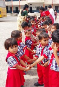 विद्यालय के भैया, बहिनो ने अपने हाथो से राखी बनाकर अपनी कला का प्रदर्शन किया। बहिनो ने भैयाओ को तिलक लगाकर उनकी कलाई पर राखी बांधकर उनके लम्बी उम्र की कामना की। सभी भैयाओ ने अपनी बहनों को सुरक्षा का वचन दिया। इस अवसर पर समस्त आचार्य, दीदी को भैया, बहिनो ने रक्षासूत्र बांधकर उनका आशीर्वाद लिया।