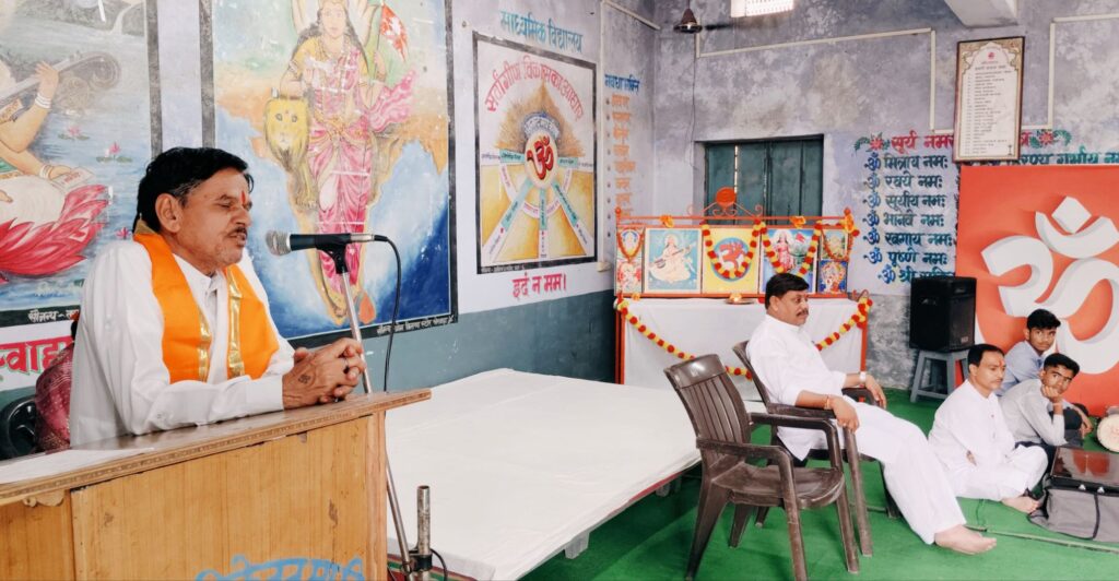 खैरवाड़ा (धरणेन्द्र जैन)।विद्या निकेतन माध्यमिक विद्यालय खेरवाड़ा में संस्कृत सप्ताह का समापन व रक्षाबंधन कार्यक्रम आयोजित किया गया। समारोह में मुख्य अतिथि कथावाचक वीरेंद्र जी शास्त्री ने मां शारदे के समक्ष दीप प्रज्ज्वलित किया। संस्कृत प्रभारी निशा व्यास ने प्रतिवेदन पढ़ा। पूरे संस्कृत सप्ताह में जिन भैया-बहिनों ने विभिन्न प्रतियोगिताओं में सुंदर प्रस्तुति दी,उन्होनें पुनः मंच पर आकर अपनी प्रस्तुति दी जिसमें भैया मोहित ,अर्जुन , कृष्णा, रुद्र, शिवानी, जिया ने गीत,श्लोक वाचन किया। फलक निर्माण प्रतियोगिता में सभी भैया बहिनों ने अपनी कला का सुंदर प्रदर्शन किया, संस्कृत वार्तालाप प्रस्तुत किया गया। शास्त्री जी ने संस्कृत भाषा पर वाख्यान दिया उन्होंने बताया कि चार वेद 18 पुराणो छः शास्त्र में 7 करोड़ मंत्र है। इन मंत्रो से साधना होती है। प्राचीन सरल मधुर भाषा है। इसके पूर्व माध्यमिक प्रधानाचार्य नवनीत श्रीमाली ने शास्त्री जी का परिचय व ओपरणा ओढ़ाकर स्वागत किया। साथ ही बहिनों द्वारा भैयाओ, आचार्य दीदी को रक्षा सूत्र बांधकर आशीर्वाद लिया। कार्यक्रम में दिलीप मेहता, हरीश जैन, बंसीलाल मेघवाल, जगदीश मीणा उपस्थित रहे।