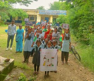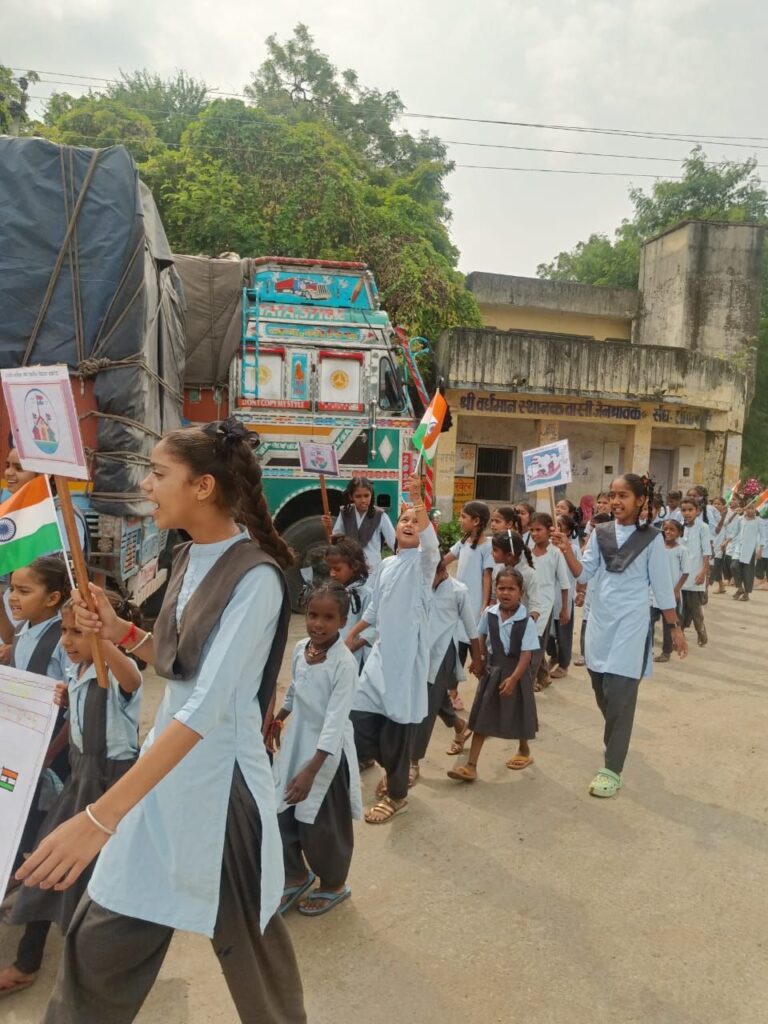 मावली,(नरेन्द्र त्रिपाठी)!राजकीय बालिका उच्च प्राथमिक विद्यालय साकरोदा की बालिकाओं द्वारा संस्था प्रधान रामनरेश विजयवर्गीय के निर्देशन में समस्त स्टाफ के सहयोग से तिरंगा रैली का आयोजन किया गया। रैली राजकीय बालिका उच्च प्राथमिक विद्यालय साकरोदा से प्रारंभ होकर ग्राम पंचायत कार्यालय से मेन बस स्टैंड एवं मुख्य बाजार से होते हुए राजकीय उच्च माध्यमिक विद्यालय से पुनः स्थानीय विद्यालय पहुंची और समापन हुआ। रैली में बालिकाओं द्वारा घर घर तिरंगा फहराने का संदेश देते हुए नारे लगाए । बालिकाएं ने धर घर तिरंगा की तख्तियां एवं तिरंगा रैली निकाली। रैली में विद्यालय स्टाफ से श्रीमती विमला पालीवाल ,श्रीमती उमा गर्ग, अनिता, श्रीमति नीरू पारगी श्री रामचंद्र आदि उपस्थित रहे।