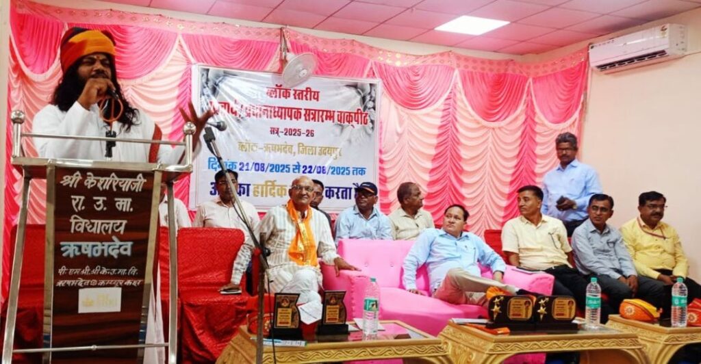 खेरवाड़ा (धरणेन्द्र जैन)। ऋषभदेव के सामुदायिक भवन मे आयोजित दो दिवसीय प्राचार्य-प्रधानाध्यापक वाकपीठ के उद्घाटन समारोह मे पूर्व सांसद अर्जुन लाल मीणा ने वताया की अच्छी शिक्षा देने का मुख्य दायित्व शिक्षक का है। शिक्षक चाहे तो बच्चों का भविष्य बना सकता है। वाकपीठ माध्यमिक अध्यक्ष मोहन लाल मीणा एवं सचिव प्रकाश चंद्र भानावत ने बताया की उद्घाटन समारोह के अति विशिष्ट अतिथि ब्रह्मचारी गुरूजी गुलाब दास जी महाराज (माकड़ादेव) झाडोल, मुख्य अतिथि पूर्व सांसद अर्जुन लाल मीणा, अध्यक्ष नाना लाल अहारी पूर्व विधायक खेरवाडा, विशिष्ट अतिथि सुन्दर लाल भानावत पूर्व जिला उप प्रमुख, ओमप्रकाश मीणा अध्यक्ष लेम्पस, अतिरिक्त जिला शिक्षा अधिकारी माध्यमिक मुरलीधर चौबीसा, मुख्य ब्लॉक शिक्षा अधिकारी सतीश गांधी, एसीबीओ प्रथम आनंद कुमार मेहता, एसीबीओ द्वितीय नाथु लाल सालवी, आर पी शशिकांत डामोर, राज शिक्षक संघ राष्ट्रीय के जिला प्रतिनिधि गोपाल शर्मा, वाकपीठ संरक्षक पन्ना लाल तेली उपस्थित रहे। वाकपीठ प्रारंभिक के अध्यक्ष देवी लाल तेली और सचिव चुन्नी लाल कलाल ने बताया की समारोह मे गुरुजी गुलाबदास जी महाराज के द्वारा बच्चों को शिक्षा के साथ साथ वैदिक ज्ञान एवं संस्कार देने की भी आवश्यक बताई। पूर्व विधायक नाना लाल अहारी ने बताया की शिक्षकों के हाथ मे भविष्य के भारत की डोर है। एम जी जी एस की बालिकाओ द्वारा सांस्कृतिक कार्यक्रम प्रस्तुत किये गए। अंत मे आभार पन्ना लाल तेली द्वारा दिया गया। कार्यक्रम का संचालन संतोष कुमार व्यास एवं सचिन जैन द्वारा किया गया। उद्घाटन समारोह के पश्चात विभिन्न विषयों पर प्रारंभिक एवं माध्यमिक की अलग अलग स्थानो पर वार्ता हुई। माध्यमिक वाकपीठ मे आयुष्मान भारत एवं हरियालो राजस्थान पर सपना तलरेजा, शिक्षा विभाग के अवकाश विषय पर विनोदपाल यादव, प्रशासनिक वार्ता नाथु लाल सालवी एसीबीओ द्वितीय, एनीमिया मुक्त भारत विषय पर आनंद कुमार मेहता एसीबीओ प्रथम, सुरेश मीणा एवं ज्योत्सना भंडारी द्वारा समूह चर्चा IFMS का संचालन (2023 से पूर्व) तथा विनोदपाल यादव और राकेश जैन (2023 के पश्चात) विषयों पर अपनी वार्ता प्रस्तुत की। इसी तरह वाकपीठ प्रारंभिक मे स्वच्छता एवं हरियालो राजस्थान विषय पर मुकेश मीणा, नामांकन एवं ठहराव विषय पर गणधर दोवडिया, बोर्ड परीक्षा परिणाम उन्नयन विषय पर नारायण लाल मीणा, स्वच्छ भारत मिशन की विद्यालय मे उपयोगिता विषय पर बसंती लाल मीणा, प्रशासनिक वार्ता सतीश गांधी सी बी ई ओ तथा CCE, सिके, FLN विषय पर दर्शना त्रिवेदी ने अपनी वार्ता प्रस्तुत की।