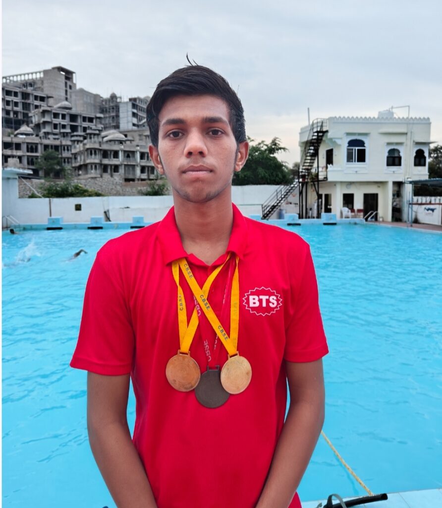 उदयपुर,(नरेन्द्र त्रिपाठी)!भोपाल में हाल ही में सीबीएसई बोर्ड द्वारा आयोजित वेस्ट ज़ोन तैराकी प्रतियोगिता में नींव चौधरी ने शानदार प्रदर्शन करते हुए दो स्वर्ण और एक कांस्य पदक अपने नाम किया।