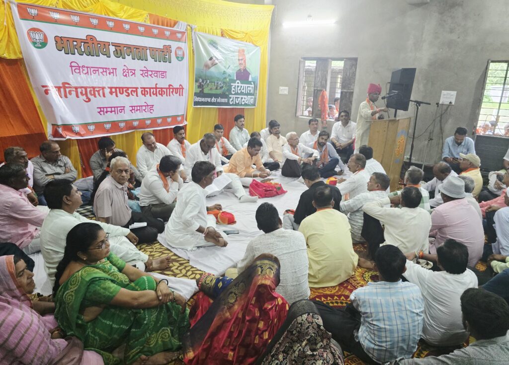 खैरवाड़ा (धरणेन्द्र जैन)।राज्य के जनजाति क्षेत्र विकास मंत्री बाबूलाल खराड़ी ने कहा कि संगठन व सत्ता में बुथ स्तरीय कार्यकर्ता का सर्वोच्च सम्मान व उनके द्वारा बताए गए समस्त विकास कार्य को सर्वोच्च प्राथमिकता प्रदान की जाएगी। खराडी रविवार को खेरवाड़ा विद्यानिकेतन मैदान में भाजपा खेरवाड़ा विधानसभा स्तरीय कार्यकर्ता सम्मेलन व मंडल पदाधिकारीयों के सम्मान समारोह को संबोधित कर रहे थे। उन्होंने कहा कि आने वाले पंचायत राज चुनाव में क्षेत्र की सभी पंचायत समितियां में प्रधान व सरपंच ,पंचायत समिति सदस्य व जिला परिषद सदस्यों को विजय बनाने का लक्ष्य लेकर कार्यकर्ता प्रस्थान करें। भाजपा की राज्य व केंद्र सरकार गांव, गरीब, किसान व आदिवासियों के विकास और कल्याण के लिए कृत संकल्प है। जनजाति बाहुल्य उदयपुर संभाग के विकास के लिए राज्य सरकार द्वारा सर्वाधिक बजट दिया जा रहा है। खराड़ी ने कहा कि क्षेत्र में विकास की लहर चलेगी तथा भाजपा सरकार का लक्ष्य समाज के अंतिम छोर पर बैठे व्यक्ति के लिए हर संभव सहायता पहुंचाने का है। उन्होंने भाजपा पदाधिकारीयों से आह्वान किया कि वह सक्रिय और सजग होकर केंद्र व राज्य सरकार की कल्याणकारी योजनाओं का लाभ आम जनता तक पहुंचे इस हेतु कार्य करें ।इस दौरान खराड़ी ने बताया कि खेरवाड़ा विधानसभा क्षेत्र में धरती आबा योजना के तहत करावाड़ा ,सागवाड़ा व हरसावाड़ा में तीन छात्रावासों का निर्माण किया जाएगा, जहां जनजाति समुदाय के छात्रों को सभी तरह की सुविधा निशुल्क उपलब्ध कराई जाएगी। सम्मेलन में खेरवाड़ा मंडल अध्यक्ष हेमंत मेहता, ऋषभदेव नगर मंडल अध्यक्ष हजाराम मीणा, ऋषभदेव ग्रामीण मंडल अध्यक्ष ईश्वरलाल मीणा, कनबई मंडल अध्यक्ष नवीन रावल, बावलवाड़ा मंडल अध्यक्ष वाल सिंह, नयागांव मंडल अध्यक्ष दुर्गा भगोरा व सेमारी मंडल अध्यक्ष के नेतृत्व में सभी कार्यकारिणी पदाधिकारीयों का पगड़ी बंधवाकर तथा दुपट्टा ओढ़ा कर मंत्री खराड़ी द्वारा स्वागत अभिनंदन किया गया। सम्मेलन की अध्यक्षता भाजपा देहात जिला अध्यक्ष पुष्कर तेली ने की तथा विशिष्ट अतिथि पूर्व विधायक नानालाल आहारी ,पूर्व देहात जिला अध्यक्ष सुंदरलाल भाणावत एवं भंवर सिंह पंवार ,पूर्व प्रधान अमृतलाल डामोर आदि थे। सम्मेलन में ओबीसी मोर्चा जिला अध्यक्ष प्रेमचंद लोहार ,भाजपा जिला मंत्री अमित कलाल, वरिष्ठ नेता पारस जैन ,खेरवाड़ा सरपंच लक्ष्मी आहारी सहित विधानसभा क्षेत्र के सात मंडलों के 1000 से ज्यादा भाजपा कार्यकर्ता उपस्थित थे ।सम्मेलन का संचालन खेरवाड़ा मंडल अध्यक्ष हेमंत मेहता ने किया तथा आभार पूर्व प्रधानअमृतलाल डामोर ने ज्ञापित किया !