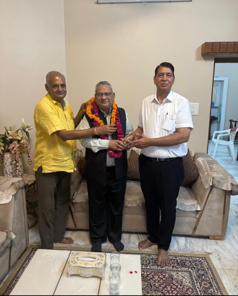 जयपुर ! अखिल भारतवर्षीय श्रीगुर्जरगौङ ब्राह्मण महासभा के राष्ट्रीय अध्यक्ष ओमप्रकाश जोशी के जयपुर आगमन पर उनका उपाध्याय हाऊस, विधाधर नगर, जयपुर पर राजस्थान प्रांतीय अध्यक्ष सुरेश कुमार उपाध्याय एवं वरिष्ठ समाज सेवी राधेश्याम शर्मा एडवोकेट ने माला, साफा पहनाकर व दुपट्टा भेंट कर स्वागत किया। राष्ट्रीय अध्यक्ष जोशी ने प्रांतीय महामंत्री के पद पर राधेश्याम शर्मा एडवोकेट विद्याधर नगर जयपुर (नारोली चोड़) को मनोनीत करते हुए मनोनयन पत्र भेंट किया। राष्ट्रीय अध्यक्ष ओमप्रकाश जोशी ने प्रांतीय अध्यक्ष एवं प्रांतीय महामंत्री का स्वागत व अभिनंदन करते हुए विश्वास प्रकट किया कि आपके नेतृत्व में समाज रचनात्मक कार्य करते हुऎ प्रगति पथ पर बढ़ेगा। प्रांतीय अध्यक्ष एवं महामंत्री द्वारा जोशी जी को विश्वास दिलाया गया कि आपने हम पर जो विश्वास प्रकट किया है उस पर हम खरा उतरने का प्रयास करते हुए समाज को आगे बढाने का संकल्प करते हैं।