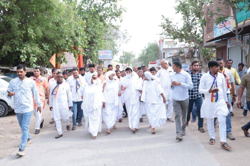 गंगरार 30 मार्च, !जैन साध्वियों के मंगल प्रवेश से रेलवे स्टेशन उपनगर हुआ धर्म मय, साध्वियों के सानिध्य में हुआ जैन स्थानक एवं नवनिर्मित दिवाकर सर्किल का लोकार्पण , विधायक डाक्टर सुरेश धाकड़ ने की पांच लाख रूपये की घोषणा। सोमवार को श्रमणसंघी जैन दिवाकरीय मालव सिंहनी गुरुणीसा कमलावती मसा की सुशिष्या व अनुष्ठान आराधिका महासती डॉक्टर कुमुदलता जी मसा, स्वर साम्राज्ञी महासती डॉक्टर महाप्रज्ञा जी मसा, वास्तु शिल्पी महासती डॉक्टर पदम कीर्ति जी मसा एवं विद्या अभिलाषी महासती श्री राज कीर्ति जी मसा के सानिध्य में बेगू के क्षेत्रीय विधायक डॉक्टर सुरेश धाकड़ के मुख्य आतिथ्य, गंगरार निवासी ताराचंद संदीप गोलेछा की अध्यक्षता,पूर्व जिला प्रमुख भैरू सिंह चौहान, महेन्द्र बोथरा रतलाम, वर्धमान स्थानक संघ के अध्यक्ष अशोक जैन, संरक्षक राजमल गोलेछा, गंगरार गांव जैन समाज अध्यक्ष कोमल सिंह मोदी, मंत्री अशोक कुमार कोंचिटा के विशिष्ट आतिथ्य में साध्वी मंडल द्वारा नवकार महामंत्र का सामुहिक जाप करते हुए मांगलिक प्रदान कर मोली बन्धन खोल शिलालेख का अनावरण कर लोकार्पित किया। इसके बाद साध्वी मंडल ने गंगरार गांव की ओर सैकड़ों अनुयायियों के संग पद यात्रा करते हुएश्रावक श्राविकाओं द्वारा प्रातः स्मरणीय महान तपस्वी चौथमल जी मसा के सम्मान में दिवाकर के यशोगान व उदघोष करते हुए जय निनाद के नारे लगा गंगरार ग्राम की ओर जाने वाले मुख्य सड़क मार्ग की ओर पावर हाउस के पास तिराहे स्थित नवनिर्मित दिवाकर सर्किल के शिलालेख का नवकार महामंत्र का जाप कर मांगलिक प्रदान करते हुए मोली बन्धन खोल बेगू क्षेत्र के विधायक डॉक्टर सुरेश धाकड़ ,मुख्य लाभार्थी सुरेश अरोड़ा विजयनगर, किशोर चिराग नानेचा भीलवाड़ा, उपखंड अधिकारी पुनीत गेलडा, तहसीलदार पुष्पेंद्र सिंह राजावत, पूर्व जिला प्रमुख भैरू सिंह चौहान, रेलवे स्टेशन जैन समाज अध्यक्ष अशोक जैन, मंत्री ताराचंद गोलेछा, अशोक कुमार कोचिटा, गंगरार जैन समाज अध्यक्ष कोमल सिंह मोदी, मंत्री सागर मल सुराणा, पूर्व जैन समाज अध्यक्ष हुकमीचंद लोढ़ा, रतनलाल टुकलिया, धनराज शर्मा सादी, जैन समाज प्रवक्ता मधुसूदन शर्मा पंचारिया, पूर्व प्रधान देवीलाल जाट, पूर्व मण्डल अध्यक्ष अशोक झवर, ज्योतिष पुरोहित,सहकारी समिति अध्यक्ष बाबू लाल बालोटिया, , एडवोकेट योगेश व्यास, राजेन्द्र शर्मा, सुनिल काकानी, किशनलाल शर्मा, मोहनलाल रेगर, पंचायत समिति सदस्य शान्ति लाल माली, गंगरार प्रशासक प्रतिनिधि एवं दादू सेवक समिति अध्यक्ष बालकृष्ण शर्मा, व्यापार मण्डल अध्यक्ष गोपाल शर्मा, दिवाकर संघ के राष्ट्रीय अध्यक्ष आई एम सेठिया, सुजान भडक्तिया, पारस डांगी , सुरेश सिंघवी, सुनील बोहरा, सुनील सिपानी, पारस डा