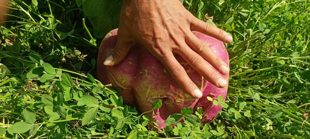 भींडर ( कन्हैयालाल मेनारिया बासड़ा)! केदारिया के शर्मा ने अपने खेत में एक फीट ऊंचा और चौड़ा शलगम उगाकर किसान ने चौंकाया,जिले में किसान कई तरह की फसलें उगाते हैं। शलगम, मूली और आलू जैसी फसलें आमतौर पर देखी जाती हैं। लेकिन केदारिया निवासी किसान शांतिलाल शर्मा और उनके भाई सुरेश शर्मा ने अपने खेत में 1 फीट ऊंचा और 1 फीट चौड़ा शलगम उगाकर सबको चौंका दिया। उनके पिता देवीलाल शर्मा भी खेती से जुड़े रहे हैं। इतने बड़े आकार का शलगम इलाके में चर्चा का विषय बन गया है।