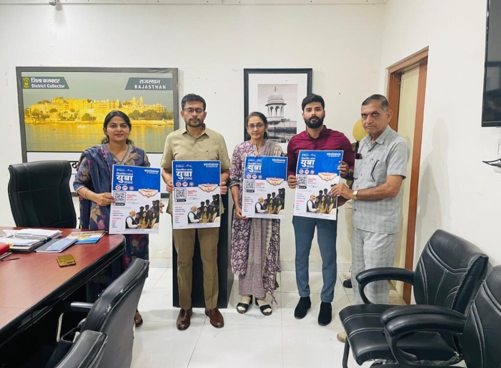 युवा संसद-विमोचन। विकसित भारत युवा संसद पोस्टर का विमोचन करते जिला कलक्टर नमित मेहता और पुलिस अधीक्षक योगेश गोयल। रजिस्ट्रेशन लिंक व क्यू आर कोड।