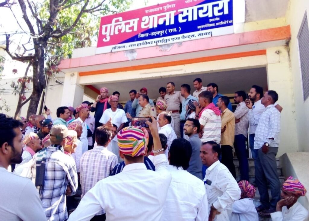 मैंने कहा कि मैं थ्रेसर मशीन से गेहूं निकाल रहा हूं।उस समय हेडकांस्टेबल और चालक दोनों मेरे पास आए और उतरते ही मारपीट करने लग गए।मुझे थाने में लेकर आए और केन लेकर मुझे यह बोला कि दूध लेकर आते है।सेमड के पास साँचली के पास मुझे उतार कर केन मुझे हाथ में पकड़ाते हुए मेरा वीडियो बनाया और शराब के जूठे मुकदमे में फसाया गया।यह सुथार समाज के लिए कलंक समान है ।इस कृत्य के खिलाफ सुथार समाज के लोग थाना परिसर में एकत्रित होकर हेड कांस्टेबल के खिलाफ एफआईआर दर्ज करने की थानाधिकारी से मांग की गई।