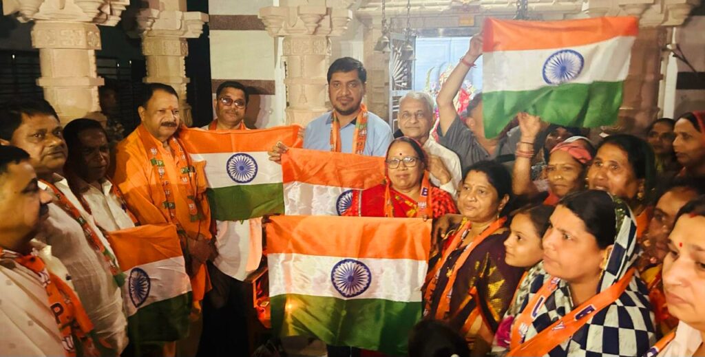 खेरवाड़ा । प्रदेश भाजपा के निर्देशानुसार भाजपा मंडल खेरवाड़ा द्वारा समीपवर्ती कटेवडी ग्राम के जय अंबे माताजी मंदिर परिसर में देश की रक्षा व सैनिको की सुरक्षा के लिए महाआरती व हनुमान चालीसा का पाठ किया गया। इस अवसर पर भाजपा पदाधिकारीयों के अलावा बड़ी संख्या में ग्रामीण महिला व पुरुष उपस्थित थे। इस अवसर पर पूर्व प्रधान अमृतलाल डामोर, भाजपा मंडल अध्यक्ष हेमंत मेहता ,जिला मंत्री अमित कलाल, वरिष्ठ नेता पारस जैन, बजरंग अग्रवाल, पूर्व जिला मंत्री विमल कोठारी नगरपालिका चेयरमैन लक्ष्मी अहारी, मंडल महामंत्री भूपेन्द्र कलाल, विक्रांत कोठारी, मंडल उपाध्यक्ष बदामीलाल सुथार, ओम व्यास , पूर्व युवा मोर्चा मंडल अध्यक्ष व पार्षद हसमुख पानेरी, मंडल मंत्री प्रेमचंद कलाल, मंदिर पुजारी जसुदेवी पानेरी, देवीलाल पटेल, हीरालाल कलाल, मरताराम दरंगा, लालुराम पटेल,भगवान कलाल ,सुखलाल पटेल सहित कार्यकर्ता उपस्थित थे।