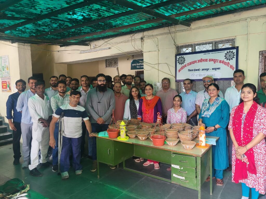 गोगुन्दा 28 मई 2025,कांतिलाल मांडोत! राजस्थान अधीनस्थ कंप्यूटर कर्मचारी संघ ईकाई उदयपुर सलूंबर के तत्वाधान मे आज भीषण गर्मी में पशु पक्षियो के पीने के पानी की आवश्यकताओ को देखते हुए परिंडा अभियान कार्यक्रम का शुभारंभ किया गया।जिला कार्यालय सूचना प्रोद्योगिकी एवं संचार विभाग उदयपुर में सुनील डामोर अतिरिक्त निदेशक, पूजा साहू उपनिदेशक, हितेश पूर्बिया एसीपी, हितेश सोनी एसीपी, आईटी यूनियन की अध्यक्ष सुमन सिंह, सलूंबर जिला अध्यक्ष मयंक मेहता महासचिव दलपत सिंह वरिष्ठ उपाध्यक्ष हिमांशु त्रिवेदी संयुक्त सचिव दीपक गुंजेटिया के द्वारा किया गया।